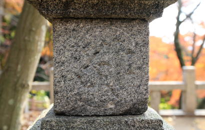 基礎は輪郭を巻き三面は格狭間、一面は銘文を刻む