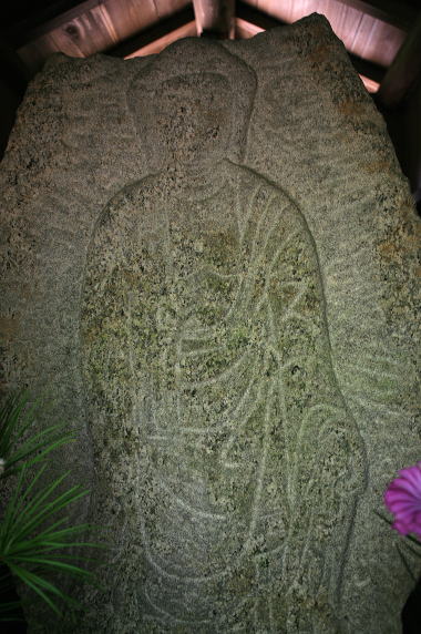 像の向かって右側に「文永七年(1270)广午六月、為西仏過去也日」左側に「南無阿弥陀仏」の刻銘がある