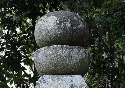 | 額安寺五輪塔 第五塔(重要文化財、鎌倉時代後期、花崗岩、火輪上まで高さ 133Cm、左端から 5基目)、空・風輪は後補 | ||