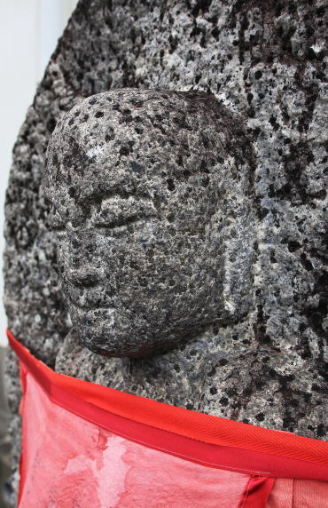 | 石材は、地元産の花崗岩が使われ黒の斑点部が多い。お顔は、引き締まった顔立ちで、少し離れて見る方が、美しく有難い | ||
