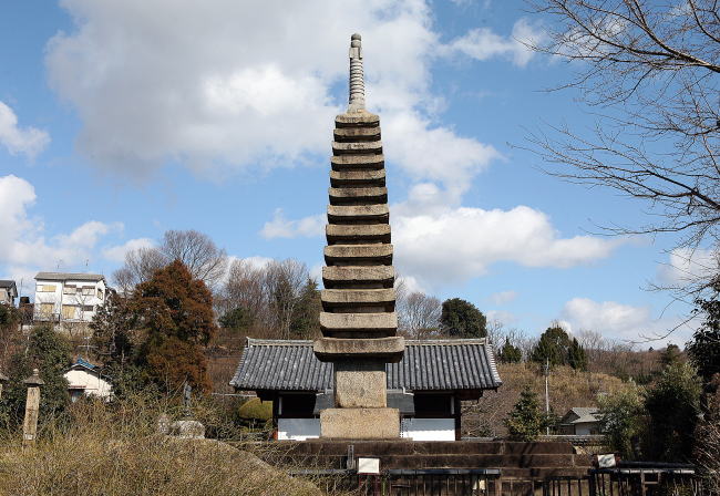 般若寺(はんにゃじ)十三重石塔(重要文化財、鎌倉時代中期 建長五年 1253年、花崗岩、高さ 14.2m)