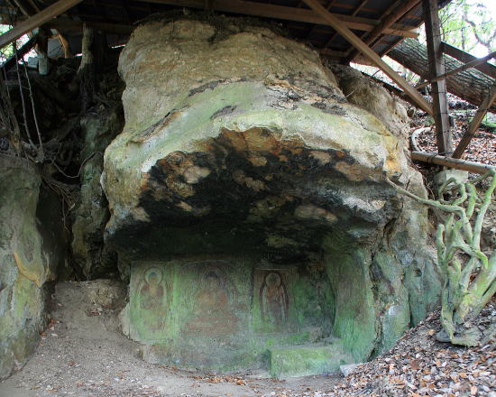 地獄谷(じごくだに)石窟仏(聖人窟)正面の三尊