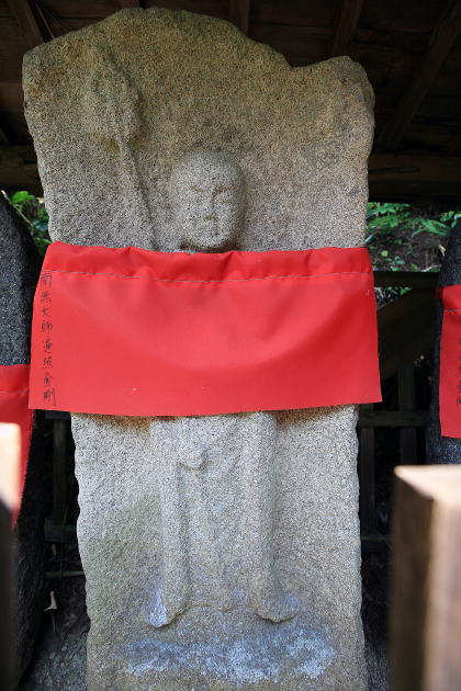 | 地蔵菩薩は、右手に錫杖 左手に宝珠を持つ。頭部の後に円光背を薄く浮き出す。花崗岩に半肉彫りしたもので、鎌倉時代の元亨二年の刻銘が入る | ||