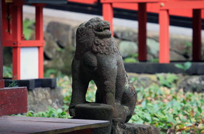 古い狛犬の秀作。特に頭髪と胸毛の巻毛、尻尾の形状などの意匠が造形的に素晴らしい