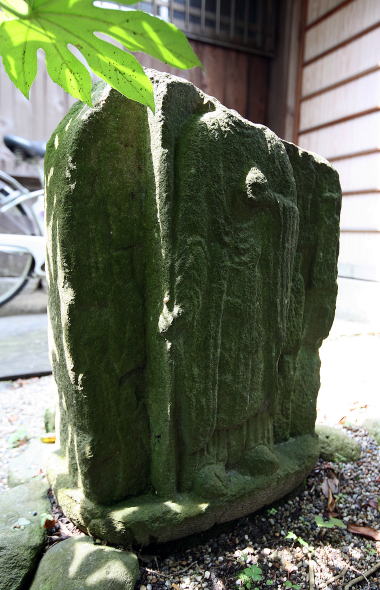 郡山城(こおりやまじょう)二面石仏 背面(鎌倉時代後期、花崗岩、高さ 75Cm 幅 58Cm 厚さ 29Cm)