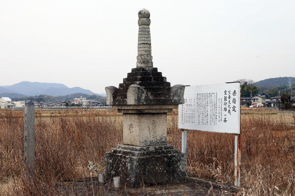 *JR伯備線「清音駅」下車、。西北西方向へ約1.9Km。堂応寺宝篋印塔より南方向へ約600mの田圃の中に立っている。