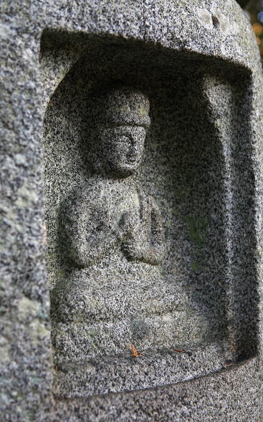 | 塔身 正面、智拳印を結ぶ金剛界大日如来坐像 | 大工 妙阿の刻銘があり、十五年後の足守八幡神社石鳥居と同作者 |