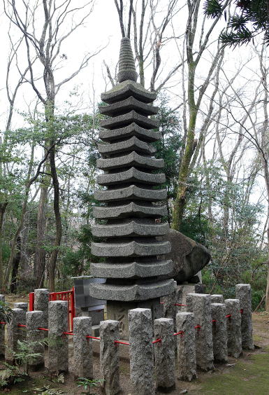 三昧尾(さんまいお)十三重石塔(重要美術品、鎌倉時代後期 永仁七年 1299年、花崗岩、高さ 499Cm)