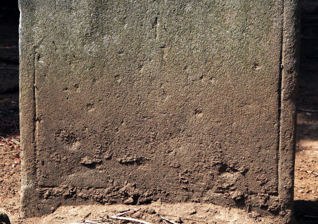 | 深く刻まれた阿弥陀の種子「キリーク」 | 板 碑 背 面 |