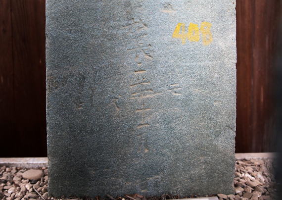 | 板碑群後列、向って左端に立つ。身部は、上方に阿弥陀如来の種子「キリーク」を蓮座上に、下方に「正中三年(1326)」の紀年銘を刻む。 | ||