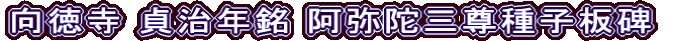 向徳寺阿弥陀三尊種子板碑(南北朝時代中期 貞治年間 1362~68年、緑泥片岩、高さ 75Cm 下幅 24Cm)