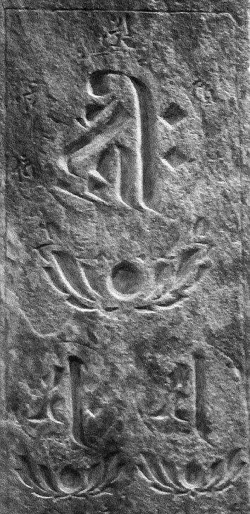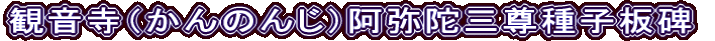 阿弥陀三尊種子は、上方に阿弥陀の種子「キリーク」、向って右下 に観音の種子「サ」、左に勢至の種子「サク」を蓮華座上月輪内に刻む。