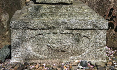 | 塔身右面、金剛界四仏のみを薬研彫りする(アク:不空成就) | 南北朝時代の大きな宝篋印塔で、基礎は制作途上と思われる |