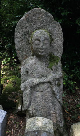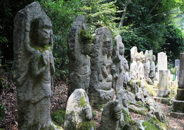 墓地の入口の山裾に、六観音と六地蔵が刻まれている(像高 約140Cm)