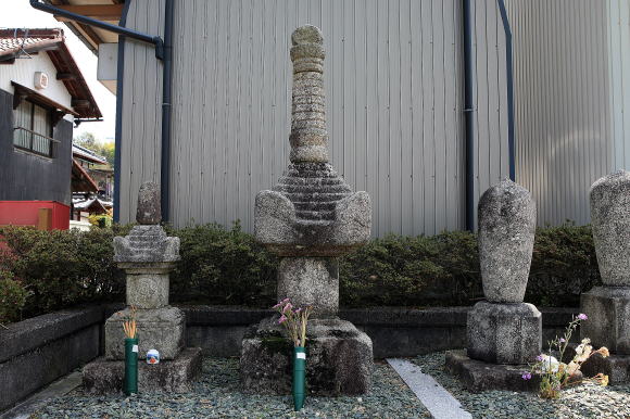 | 寺院の南側道路を挟んだ墓地に安置されている | 基礎上端は二段、側面は四面とも無地で刻銘はない |