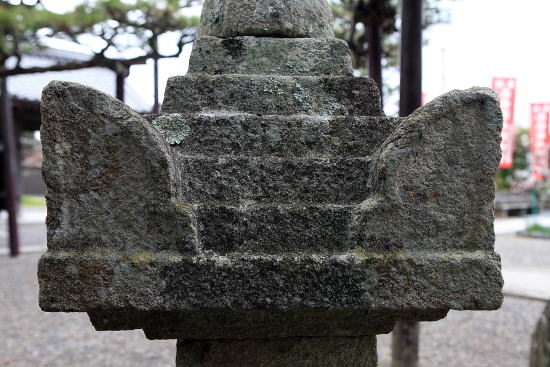 笠の段形は、下が薄く二段、上が五段で、隅飾は二弧輪郭付で内は無地