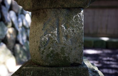 | 拝殿横の石段を登りきり、本殿の向かって左側、切石の基壇上に立つ | 塔身は、金剛界四仏の種子のみを刻んでいる(アク:不空成就) |