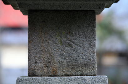 基礎は壇上積式で、上端二段、正面と両側面は宝瓶三茎蓮の文様を刻み出す