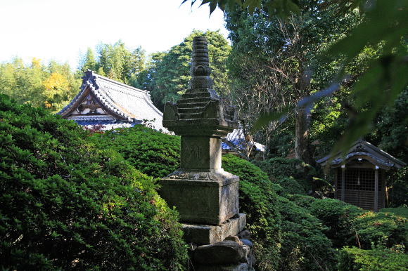 | 宝篋印塔は、境内 さつきの築山の頂上に立っている | 塔身は、金剛界四仏の種子を刻む(ウーン:阿閦如来) |