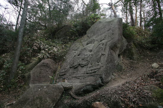 狛坂(こまさか)磨崖仏(史跡、奈良時代後期〜平安時代前期、花崗岩、高さ 630Cm)
