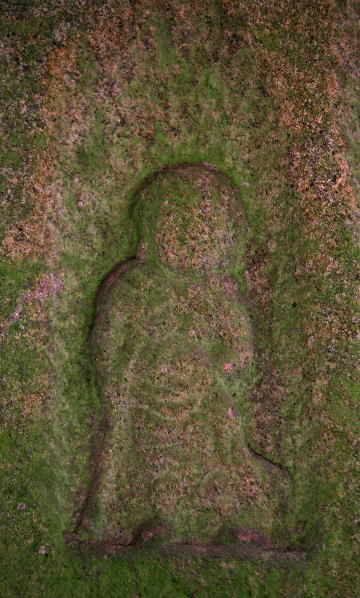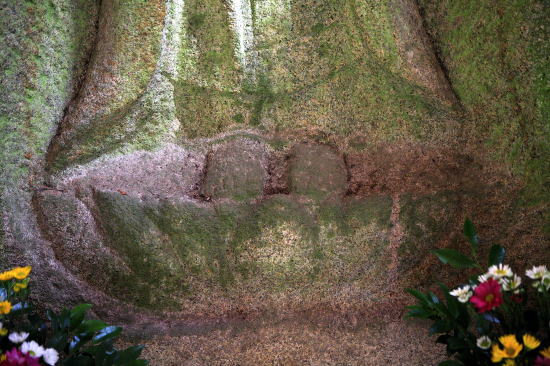 | 大きな花崗岩の中央を彫りしずめ、像高 173Cmの地蔵立像を刻出する。両脇に小さい像が各一体彫られているが、尊名は不明 | ||
