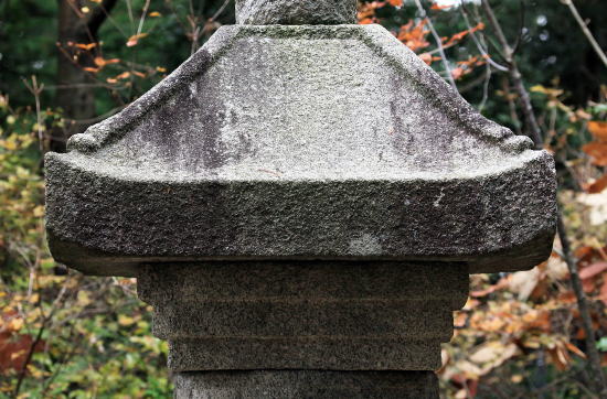 基礎は四個の石を田の字状に組み、各面輪郭を巻き、それぞれ格狭間をつくる。