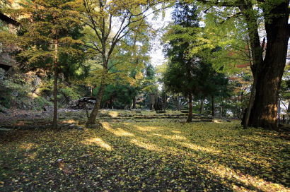 | 本堂は昭和五十六年(1981)の豪雪により崩壊し今は樹木を残すのみ | ||