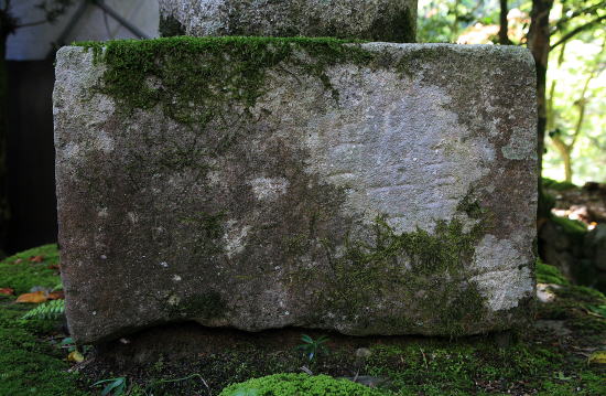 基礎の三面は輪郭を巻き内に格狭間をつくる。残り一面(上写真)は六行にわたり刻銘を入れる