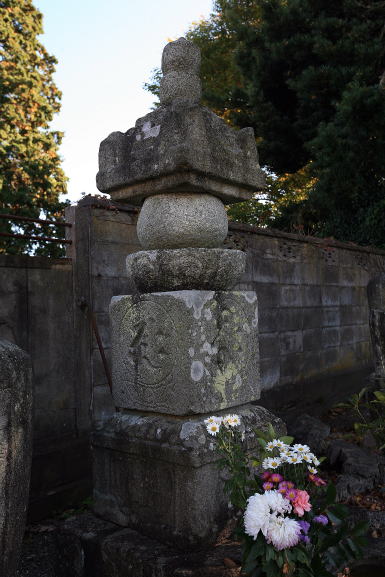 | 笠・塔身・基礎が、別物だが鎌倉時代後期の遺品 | 金剛界四仏の種子、「ウーン」:阿閦(向かって左側)と「アク」:不空成就(右) |