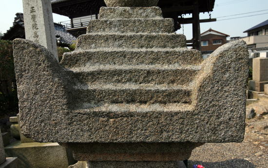 笠は、下二段、上六段で、垂直に立つ隅飾は二弧無地で軒と区別せず のべ作りとする