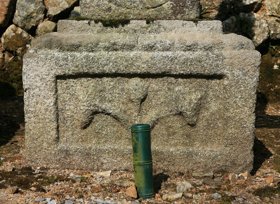 | 国史跡、無銘、花崗岩、総高 233.5Cm | 塔身、月輪内に金剛界四仏の種子を薬研彫りする(ウーン:阿シュク) |