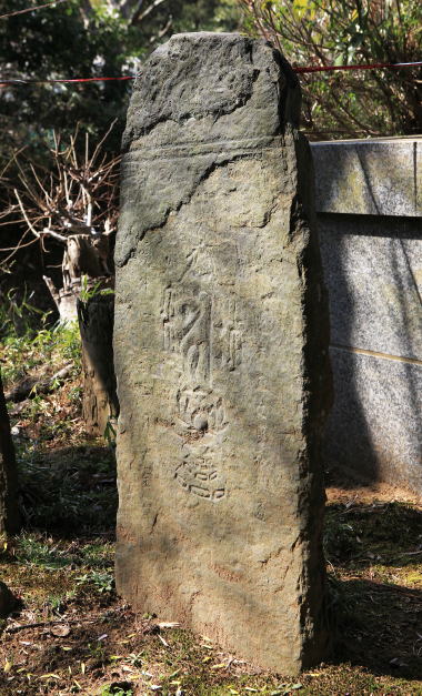 香取家(かとりけ)墓地 阿弥陀種子板碑(鎌倉時代後期 正中二年 1325年、黒雲母片岩、高さ 113Cm 幅 51Cm)