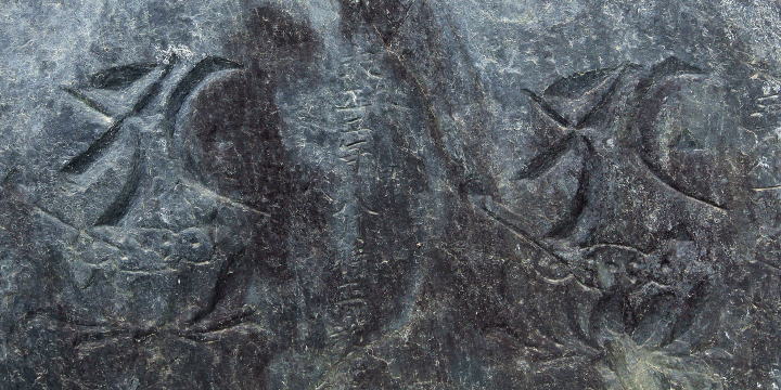 蓮座上に虚空蔵菩薩の種子「タラーク」が並列に薬研彫されている。