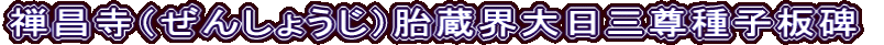 禅昌寺(ぜんしょうじ)胎蔵界大日三尊種子板碑(鎌倉時代後期、黒雲母片岩、地上高 約220Cm 下幅 95.5Cm)
