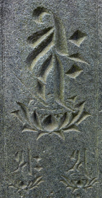 | 身部は二重線の輪郭を巻き、上方に阿弥陀三尊の種子を蓮座上に、下方は中央に紀年銘、左右に各一行 梵字光明真言を刻む。 | ||