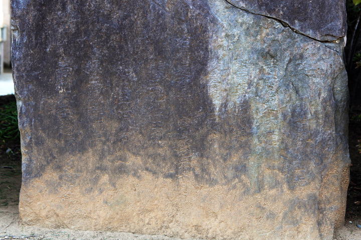 | 大本堂に向って左手横の境内に立つ、二基の内右側。身部は、上方に阿弥陀如来の種子「キリーク」、下方に九行に亘る銘文を刻む。 | ||