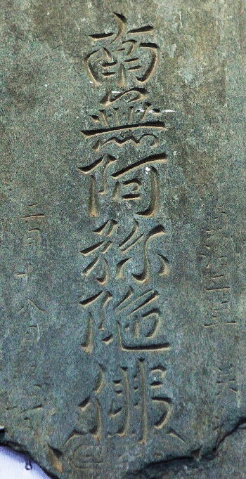名号の向って右に「應安二二(四)年(1371)」、左に「四月 日」と刻む。全体に摩耗が進んでいる。