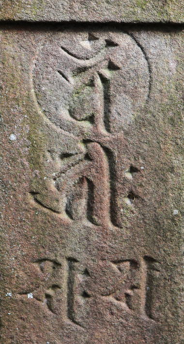 筏立 金剛界大日・阿弥陀三尊種子板碑 (室町時代前期 応永四年 1397年、砂岩、高さ 116Cm 幅 23Cm)