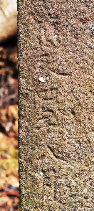 | 刻銘:「應永四年(1397)八月」 | 板碑、側・背面。頭部の二条線は、側面にも及んでいる。 |