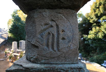 | 塔身正面、月輪内に金剛界四仏の種子を薬研彫りする(ウーン:阿閦如来) | ||