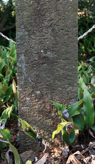 | 西白上笠塔婆と同形式で、塔身上部に大きく梵字「ウーン」を刻む | 梵字の下には「金剛蔵菩薩」、その下に銘文を刻む |